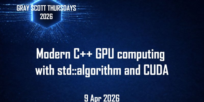 This week’s Gray Scott Thursdays webinar will explore Modern C++ GPU computing with std::algorithm and CUDA. Scheduled for 9 April 2026, the session will provide a practical introduction to writing GPU-accelerated code using modern C++ standards.