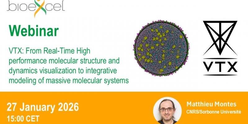 The online seminar VTX: From real-time high-performance molecular structure and dynamics visualization to integrative modeling of massive molecular systems will be organized by European Centre of the Excellence for Computational Biomolecular Research (BioExcel) on 27 January 2026.