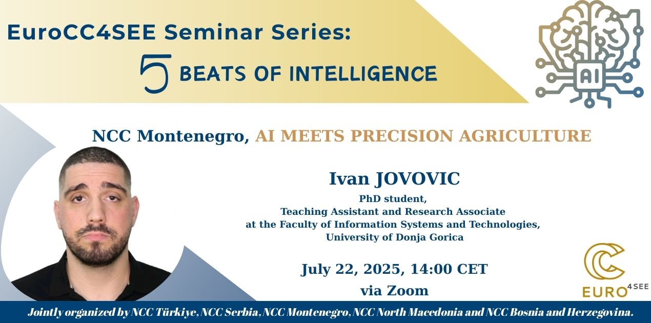 The final seminar in the EuroCC4SEE series, called 5 Beats of Intelligence, will examine the relationship between artificial intelligence and agricultural practices. It is set for 22 July 2025.