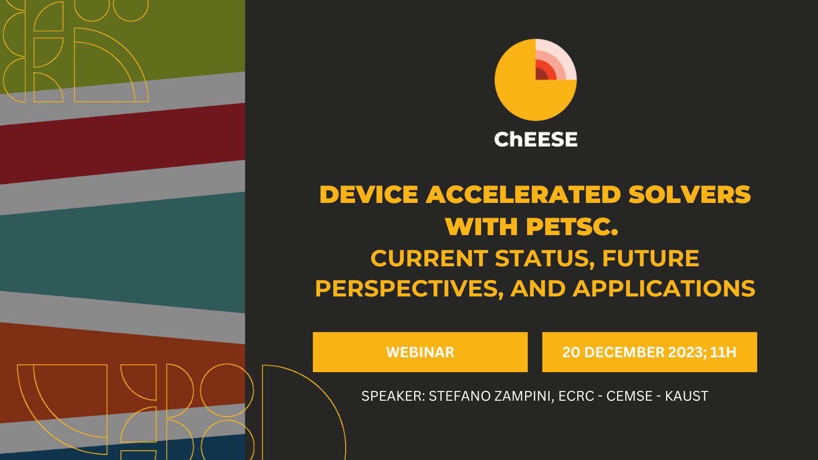 The Center of Excellence in Solid Earth - ChEESE is hosting a webinar on 20 December 2023 at 11:00 CET titled Device Accelerated Solvers with PETSc: Current Status, Future Perspectives, and Applications. Senior Researcher Stefano Zampini will discuss the latest developments in using GPUs with the Portable and Extensible Toolkit for Scientific Computing (PETSc), an award-winning software for solving large systems of nonlinear and time-dependent partial differential equations numerically.