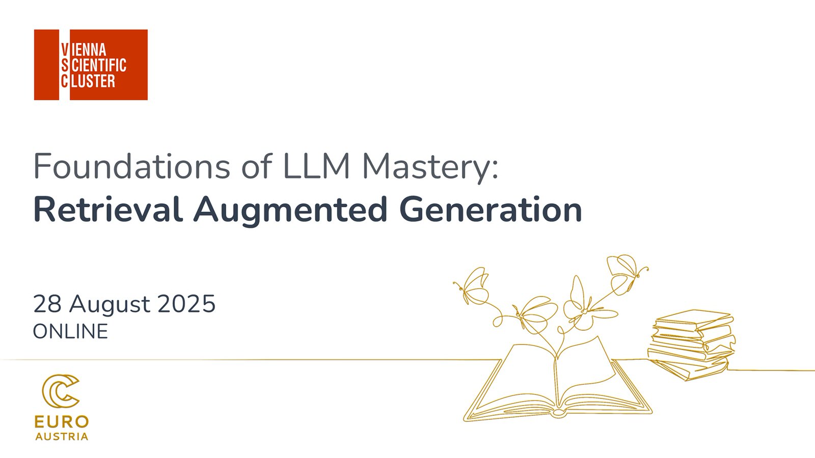 As part of the online Foundations of LLM Mastery training series, EuroCC Austria is organizing a 3.5-hour Retrieval Augmented Generation (RAG) course on 28 August 2025. This course provides professionals from start-ups, SMEs, and large enterprises with an in-depth look at RAG techniques for enhancing Large Language Models with real-time, relevant information.