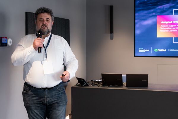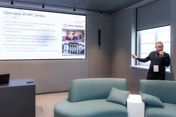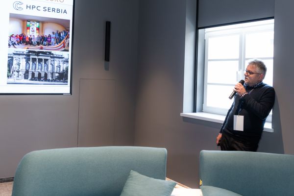 The regional overview continued with Boro Jakimovski from the Faculty of Computer Science and Engineering at Ss. Cyril and Methodius University in Skopje, who shared insights into North Macedonia’s growing HPC infrastructure and its integration into research and innovation projects. Enis Kočan, representing the University of Montenegro, spoke about Montenegro’s journey in developing HPC capabilities, underlining the importance of cross-border cooperation and knowledge exchange. Similarly, Ana Lalović from Verlab Research Institute provided an update from Bosnia and Herzegovina, pointing to emerging use cases and institutional engagement in building national HPC competence. The session also featured a contribution from the private sector. Milan Avramović, representing Hewlett Packard Enterprise operated by Selectium, presented the company’s involvement in supporting HPC development in the region. His talk illustrated how industry leaders can play a strategic role in empowering national infrastructures and facilitating technology transfer. Finally, Dušan Vudragović from the Institute of Physics Belgrade concluded the session with an overview of HPC Serbia’s activities, outlining the country’s progress in user support, training, and coordination as part of the EuroCC4SEE project.