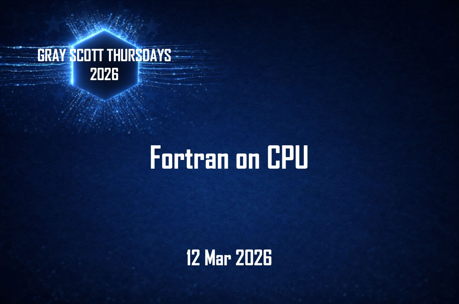 A new session on modern Fortran programming for CPU architectures will be part of the Gray Scott Thursdays webinar series, scheduled for 12 March 2026.