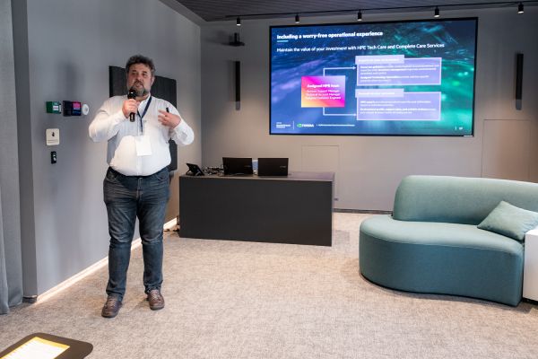 The regional overview continued with Boro Jakimovski from the Faculty of Computer Science and Engineering at Ss. Cyril and Methodius University in Skopje, who shared insights into North Macedonia’s growing HPC infrastructure and its integration into research and innovation projects. Enis Kočan, representing the University of Montenegro, spoke about Montenegro’s journey in developing HPC capabilities, underlining the importance of cross-border cooperation and knowledge exchange. Similarly, Ana Lalović from Verlab Research Institute provided an update from Bosnia and Herzegovina, pointing to emerging use cases and institutional engagement in building national HPC competence. The session also featured a contribution from the private sector. Milan Avramović, representing Hewlett Packard Enterprise operated by Selectium, presented the company’s involvement in supporting HPC development in the region. His talk illustrated how industry leaders can play a strategic role in empowering national infrastructures and facilitating technology transfer. Finally, Dušan Vudragović from the Institute of Physics Belgrade concluded the session with an overview of HPC Serbia’s activities, outlining the country’s progress in user support, training, and coordination as part of the EuroCC4SEE project.